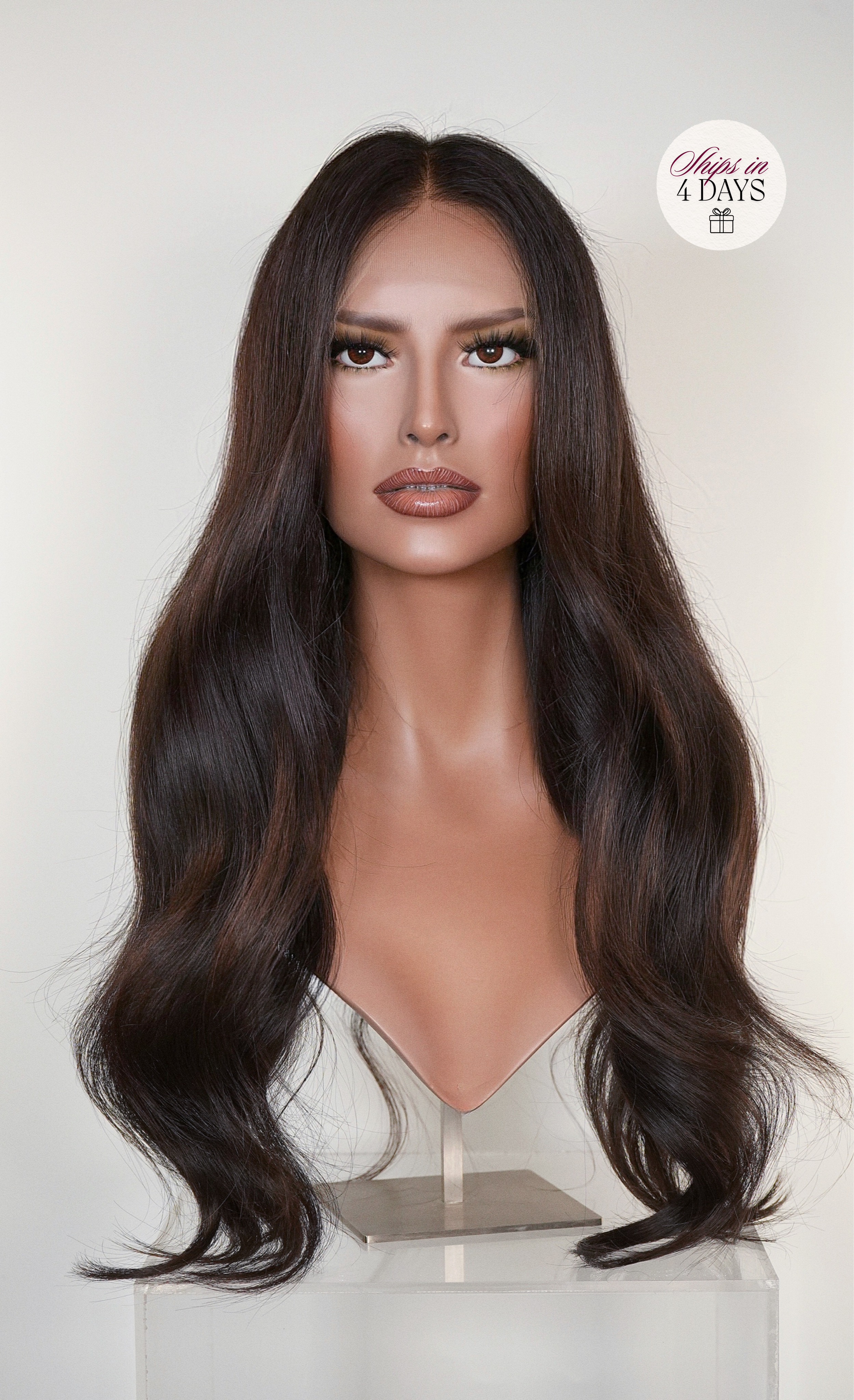 IMPORTANT: Ready-to-ship designs are dispatched within 3-4 business days after purchase. Please ensure you are completely in love with your chosen piece before completing your purchase. Payment confirms your agreement with our terms and conditions. Keep in mind that slight colour variations may occur due to different screens and lighting. And because we exclusively source raw virgin human hair, donor availability can impact certain materials. No two wigs are exactly alike—each one is painted and crafted in house by hand.