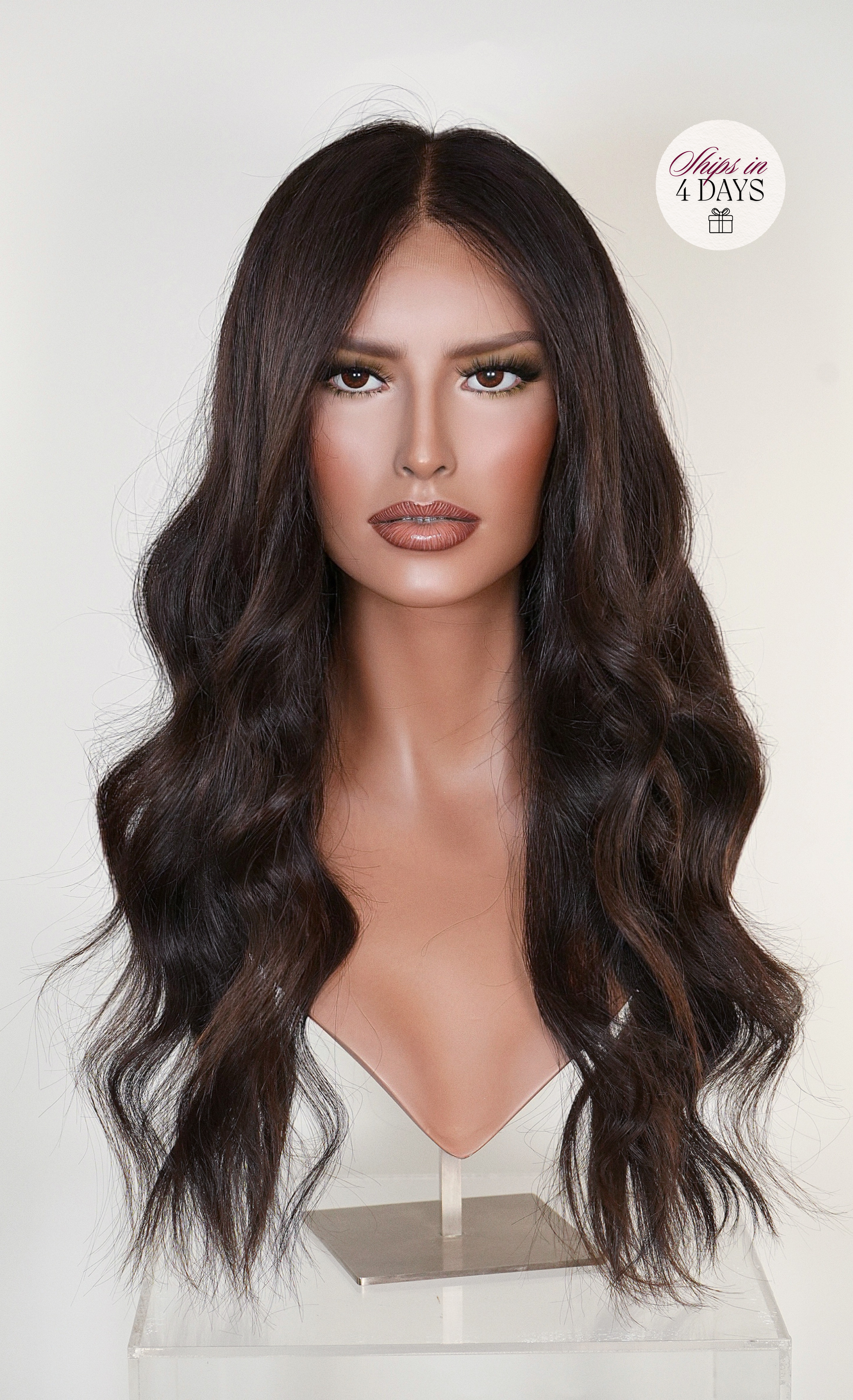 IMPORTANT: Ready-to-ship designs are dispatched within 3-4 business days after purchase. Please ensure you are completely in love with your chosen piece before completing your purchase. Payment confirms your agreement with our terms and conditions. Keep in mind that slight colour variations may occur due to different screens and lighting. And because we exclusively source raw virgin human hair, donor availability can impact certain materials. No two wigs are exactly alike—each one is painted in house and crafted by hand.